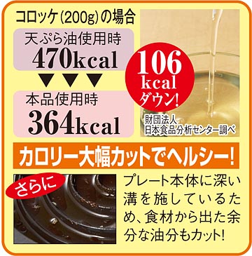 揚げ物はちょっと目を離しただけでも煙が上がったり、火が油に移ったり…。揚げ終えた油の処理もたいへん。それにカロリーも気になる…。そこで電子レンジで手軽に揚げ物ができる夢のような調理器をご紹介します。油を使わず、食材の余分な脂を落としてくれるので揚げ物のカロリーを大幅にカット。ダイエットや生活習慣病予防を心がけている方も、これなら揚げ物を我慢する必要がありません。鳥の唐揚げや海老フライなど、お好みの食材を調理器にのせて、あとは電子レンジをスタートさせるだけ。外はカリッと、中はふっくら仕上がります。そのまま食卓に出せるので洗い物が減って後片づけもラク。ガスレンジのお掃除や油の処理も不要です。揚げ物の他、焼き魚やステーキなどを焼くこともでき、様々なメニューに大活躍。ホワイトとイエローの2個をセットにしましたので、揚げ物と焼物を2種類作ることもできます。