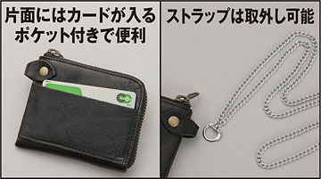 お財布の中身って意外と多いですよね。でも大きな財布だと持ち歩くにはちょっと不便…。でもこのお財布ならYシャツのポケットに入れてもスマートに持ち歩くことができるんです。薄くて丈夫な馬革のしなやかさを生かした財布でYシャツのポケットにスッキリ収まります。軽量アルミ製のストラップ付きなのでうっかり落としたり、盗まれる心配もありません。L字型ファスナーで大きく開くのでとても取り出しやすくて便利。両サイドにはお札やカード、そして中央ファスナー部には小銭が入ります。また、片面にもカードが入るポケットが付いているのでとても便利です。馬革の自然な風合いを生かした染色を施していますので丈夫な使い込んだような味わいがあり、愛用するほどその深みは増していきます。長くお使いいただきたい逸品です。平成26年は午年「うまくいく」といわれる縁起物の馬革財布で開運・金運を願ってください。