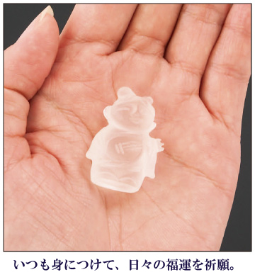 弁財天は七福神の一人で、財福、知恵の徳があるとされ、琵琶を持って音楽や弁舌の才能があるといわれています。この弁財天を甲州貴石細工の伝統工芸士“米長朝喜”が水晶の手のひらサイズに仕上げた逸品です。お顔の表情がとても和やかで見た方が心安らぐように精魂込めて彫り上げました。巾着袋付きなのでいつも身に着けてお持ちいただければ可愛らしい弁天様があなたに幸運を運んでくれることでしょう。