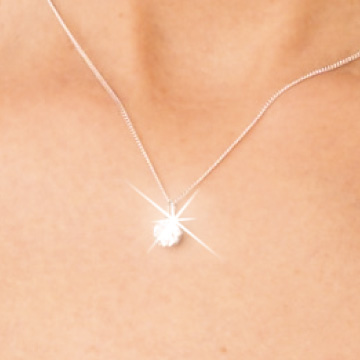キラキラ煌めく直径約6.5ミリというキュービックジルコニアの一粒石が、貴女の胸元を華麗に彩ります。一粒石の輝きを際立たせるために、最も美しいといわれる18金ホワイトゴールドの六本爪でセッティングしました。オーソドックスなシルバーのチェーンと相まって、華やかなさの中にも上品で優雅な雰囲気を漂わせてくれます。パーティーなどの席にはもちろん、普段ちょっとおしゃれした時にも最適。高額のダイヤモンドのように気を使わずに、気軽に身に着けて輝きを楽しめます。