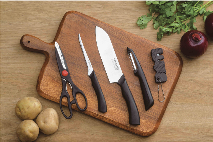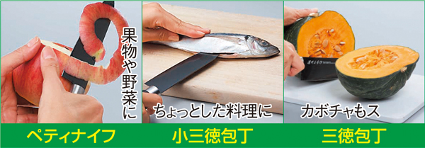●セット内容=三徳包丁、小三徳包丁、ペティナイフ、ダイヤモンドシャープナー●サイズ及び重さ=三徳包丁:全長29.5cm、