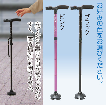 LEDライト付き 4点自立お洒落ステッキ (53061-002 ~ 53061-003)