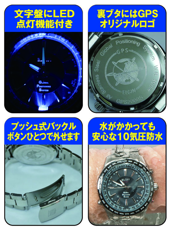 宇宙開発の超大国アメリカの人気ブランド「エルジン」から、人工衛星に搭載された原子時計の時刻を受信できる! 最新鋭の「GPS衛星電波時計」の登場です。世界中どこでも自動受信でき、面倒な時刻合わせは、もちろん不要。現在地の位置情報を受信解析して、GPS衛星電波から日付・時間情報の他に世界30都市のタイムゾーン情報を取得できる、最新鋭メカです。しかも、文字盤にはLEDライトを搭載。暗闇の中でも時刻が分かります。さらに、衛星電波を自動オフにするフライトモード機能や10気圧防水など、便利な機能を満載。高級感に満ちた輝きを放つオールステンレススチールの贅沢な造りで、裏蓋にはGPSオリジナルロゴを刻印しました。文字盤の色も精悍なブラック、ダンディなブルー、気品あるホワイトの3色から、お好きな色を。腕時計は男性のステイタスを示す持ち物。エルジンの「GPS衛星電波時計」なら、堂々たる存在感を発揮します。