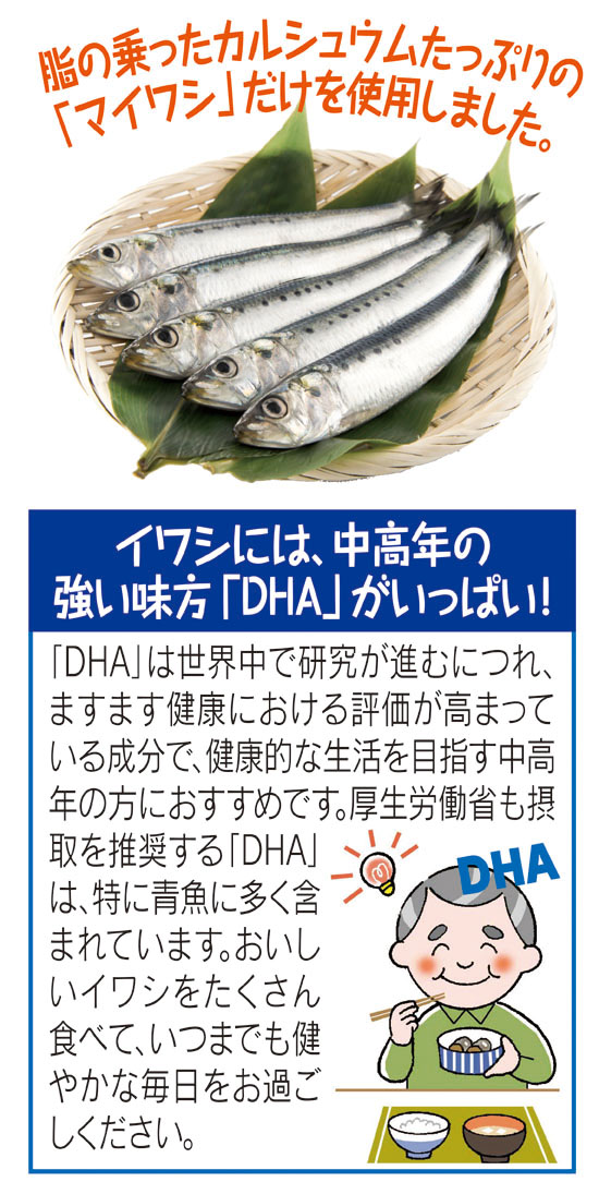 獲れたてピチピチ新鮮! 脂の乗った大ぶりの国産「マイワシ」だけを使用した、おいしさ抜群のイワシ缶です。素材の良さを大切にし、合成保存料や甘味料などの添加物は一切使わない、自然なままのおいしさ。DHAなど生活習慣病の予防に効果的な栄養素を豊富に含み、健康が気になる中高年の方には特におすすめです。味付けにもとことんこだわり、清冽な岩手山の地下水を使って寒季に仕込んだ国産丸大豆醤油と、北海道のてんさい100%のグラニュー糖だけで、じっくり時間をかけ高圧釜で焚き上げました。骨までやわらかく、歯の弱い方でも安心して召し上がれます。ごはんのおかずにはもちろん、すぐに出せる酒の肴としても重宝。スーパーなどで買って持ち帰れば重くて大変な缶詰をまとめて24缶、ご自宅までお届けします。ぜひこの機会にお求めください。