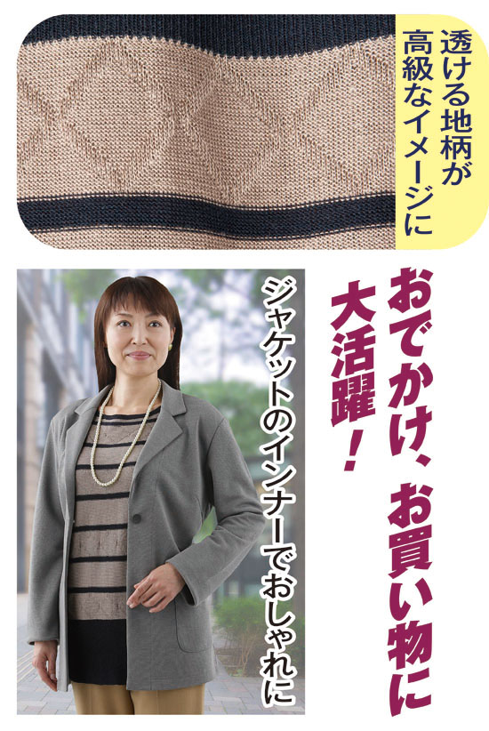 ミセスに人気の地柄ボーダープルオーバー(3色組) (55164-030 ~ 55164-050)