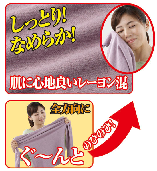 これはまるでセーター!! 厚手リブ編みの身生地で両面起毛だから、ふっくらふわぽか。肌着なのにセーターを着たような暖かさに包まれる、防寒イチ押しの暖か上下セットです。レーヨン混使いだから、肌ざわりはしっとりなめらかで、一度身につけたら、もう手放せない心地よさ。8分袖シャツの胸元を飾る豪華なV字レースは気品に満ち、パンツ裾の同レースも上品です。シックなチャコールとエレガントなパープルのお洒落なカラー肌着で、アウターの色に合わせて着分けでき、4着セットだから洗い替えにも重宝します。しっとりふわぽか、上品でお洒落な2色4着組で、1着あたりなんと3,375円の超格安お値段も見逃せません。