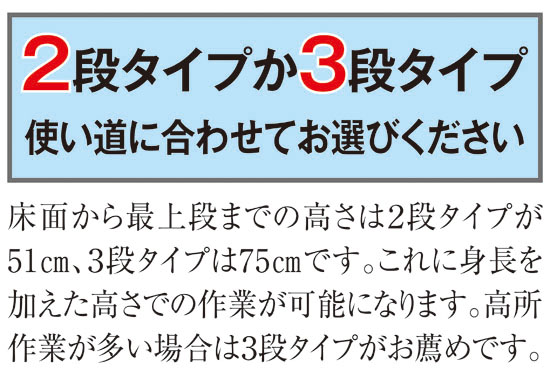 天井の電球交換やエアコン掃除、窓拭き、暮れの大掃除…など、様々な用途で人気の折りたたみ式踏み台が、さらに使いやすくなりました。第一の工夫は、最上段がクッション入りになって、椅子としても利用できるようになったことです。中腰になったり、かがんだりの作業がきつい時や、ちょっとひと休みしたい時にこれは便利です。そして第二の工夫は、踏み台の幅が広くなって、足もとの安定感が抜群になったこと。これで女性もご年配者も、高い所での作業がいっそうラクラク安心になりました。折りたたむとコンパクトに変身して、収納場所をとらないのも大きな魅力です!