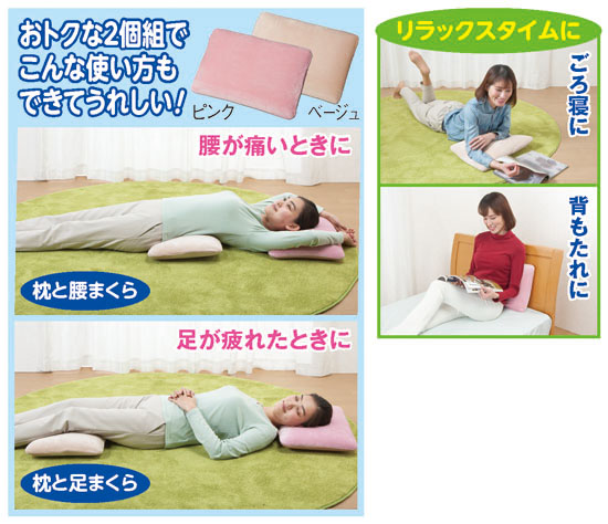 触れた時の肌あたりの心地よさと程よい弾力が、あのふわふわのマシュマロを思わせる夢のような枕のご紹介です。カバーに使用したのはストレッチ性に富み、肌ざわりがソフトなニット生地で、いつまでもふれていたいほどの心地よさ。中材はマシュマロのようなやさしい弾力の低反発ウレタンなので、頭や首の形状にやさしくフィットして心地よい寝姿勢を保ちます。快適な睡眠を得るには、寝ている時に首が枕にフィットしていることが大切といわれ、この枕はどんな寝姿勢でも首をしっかり支えてくれるのでまさに理想の枕と言えましょう。また、高さが低めなので首への負担が少なく寝返りもラク。2個組なので、一つは毎日使う枕として、もう一つは腰の下に敷く腰枕や膝の下に敷く膝枕としても使えます。毎日の健康維持のためにも、ぜひおすすめです。