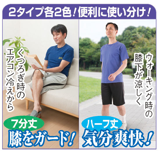 蒸し暑い季節にあると大変重宝する今シーズン大人気の紳士用パンツです。ハーフ丈と7分丈のセットで、足元は見た目も涼しげ。ハーフ丈、7分丈のいずれも脇はメッシュ仕様なので通気性抜群。身生地は肌ざわりがサラッとして快適です。配色切り替えとライン使いが小粋なスポーティーなデザインは、ウォーキングなどの運動はもちろん、散歩やくつろぎにもぴったり。丈の長さが2つから選べ、その日の着こなしや気温、気分に合わせてはき替えられるのも便利です。7分丈の右後ろにはケータイなどの収納に役立つポケット付きで、面テープを閉じれば小物が落ちる心配不要。今回は、グレーとブラックの2色組で、Tシャツなどとの着こなしにも活躍とます。4枚組なので洗い替えにも便利で、1枚あたり2,500円とお得な価格も見逃せませんので、暑くなる前にぜひお求めください。