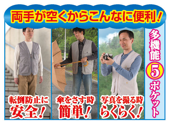 簡単ファスナーの多機能ベスト(3枚組) (55806-030 ~ 55806-050)
