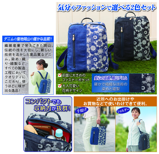 デニムの聖地岡山のたっぷり収納お洒落リュック(2色組) (71389-000)