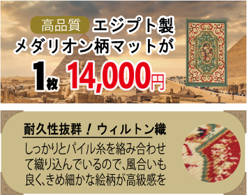 わずか1,000円をプラスするだけでお求めいただける、3枚セットもご用意しています。「メダリオン柄マット(3枚」の商品ページをご覧ください。