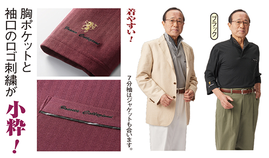 シニア世代の紳士のお洒落用としてセンスの良さが光り、エレガントに着こなせる二重衿のドレススポロシャツです。2カ所に本格的なイタリアンブランドロゴが刺繍され、柄変化の衿と共にスキのないおしゃれを演出。7分デザインの袖は春から秋までインナーでもアウターでも自由に着こなせ、汗ばむ季節やジャケットを羽織った際にもベタつかず爽やかな着用感です。長袖でもなく半袖でもない丁度シニアにぴったりのポロ。落ち着いたブラック、グレー、渋いワインの3色が各2枚ずつの計6枚組でお届けします。多彩にコーディネートできる色目が揃い、安心して一年中着回しが楽しめます。