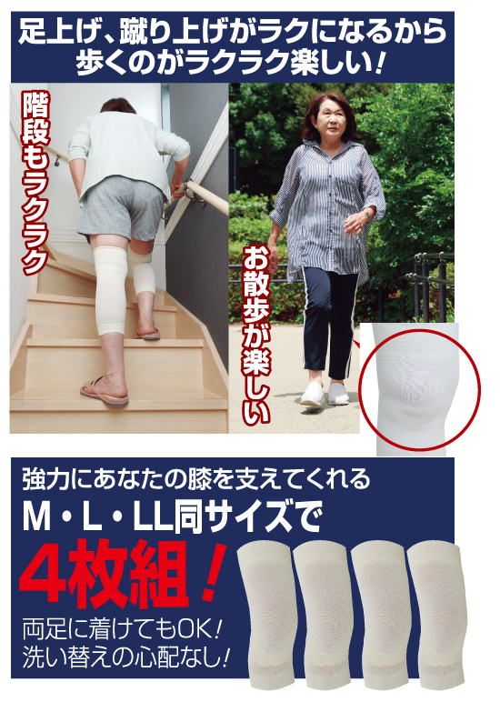 足が上がる ずれない!膝楽サポーター(4枚) (56748-030 ~ 56748-050)