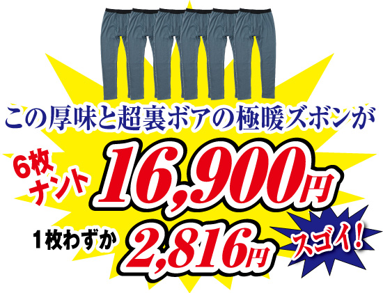 極厚温感ぽかぽかボアズボン下(6本) (56771-030 ~ 56771-050)
