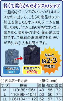 広島産デニムのシャツ2枚組 (56826-030 ~ 56826-050)