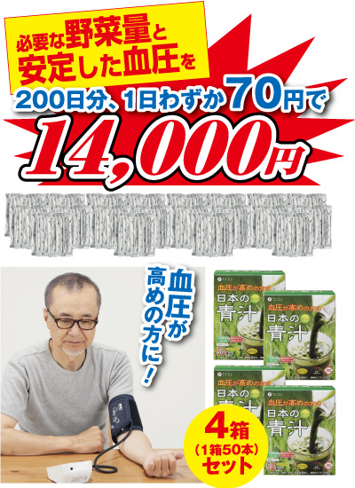 日本中に血圧が高めで実は不安に感じている方が案外多いようです。貴方はどうですか?この日本の青汁にはアミノ酸の一種で通常の食生活において、なす、トマト、じゃがいもを代表とした食材から日常的に摂取されている物質で機能性関与成分とされているGABA(ギャバ)が含まれていて血圧が高めの方により効果があるとされています。とっても飲みやすくつくられていて、一日一杯飲むだけで日々安心。日本の青汁で血圧の管理をして明るく元気な健康生活をお送り下さい。