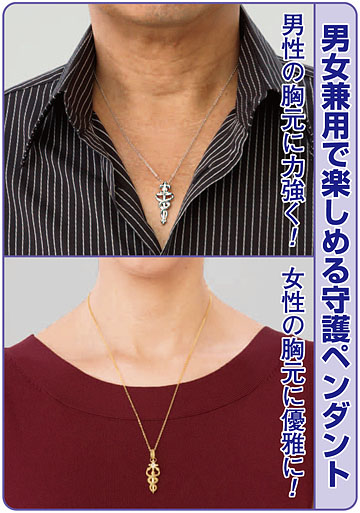 ヘルメスの杖は所有者を大きな力で守る神聖な杖とされています。二匹の蛇が絡み合う、ギリシアの錬金術の神ヘルメスが持つ杖は、完全な金属である黄金を作る超越的な力の象徴ともなり、持つだけで金運を招いてくれそうです。また、ギリシャの医神は大地の治癒力を伝える蛇の絡んだ杖を持っていたとされています。そのような金運や健康運を司るヘルメスの杖をモチーフにしたお守りペンダントです。金色と銀色のデザイン違いの2本セットなので男女兼用のお守りとしてだけでなく、ファッションとしても素敵。ご夫婦でつけたり、またその日のコーディネートに合わせたりと個性的なお洒落をお楽しみいただけます。