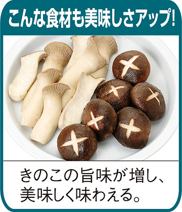 秋野菜やきのこ類が食卓を飾る、この季節には特におすすめ!栄養分を損なわず、風味豊かな蒸し料理が楽しめる「ヘルシー低温蒸し鍋」です。高温の蒸気が抜ける穴をフード部分に設け、理想的な蒸し温度70~80度を保持。きのこ類や野菜は食感を保ち、風味も豊か、肉や魚はふっくらジューシーに蒸し上がります。熱に弱いビタミンなどもこわれにくいので、しっかり栄養が摂れ、健康維持に役立ちます。低温蒸しはまた、食感を保ちながら火を通しているので蒸した野菜などを冷蔵庫に保存しておけば、忙しい時など大助かり。安心のSGマーク付きで、ガスやIHなどほとんどの熱源で使用できるので、大変重宝します。